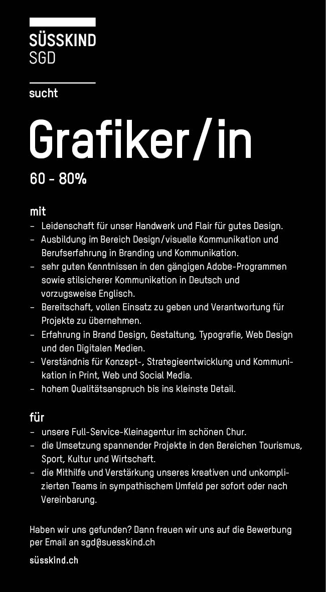 Wir bieten Grafik, Gestaltung und Programmierung aus Chur und dem Engadin, Graubünden für: Print Design, Briefpapier, Broschüre, Buchgestaltung, Flyer, Infografik, Inserate, Jahresbericht, Kalender, Magazin, Mailing, Piktogramme, Plakat, Postkarte, Speisekarten, Webseite, Plakate, Logo Design, Webseiten Erstellung (Gestaltung und Programmierung), Manual Design, Beschriftungen, Display, Fahnen, Fahrzeugbeschriftung, Schilder, Stelen und mehr.