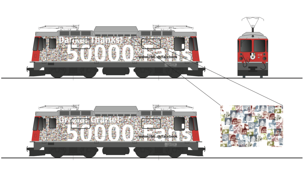 Als Danke für die Facebook-Fans der Rhätischen Bahn gestaltet Süsskind SGD eine Lokomotive vom Typ Ge 4/4 II.