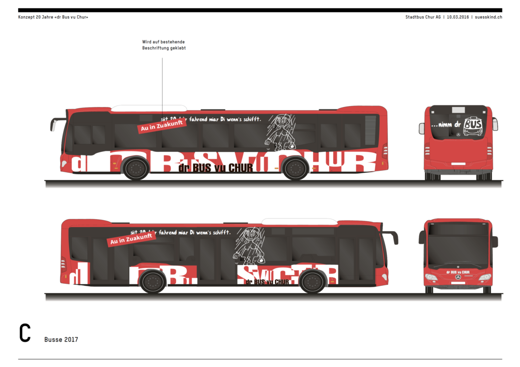 Im Zusammenhang mit dem 20-jährigen Jubiläum des Chur Bus entwickelt Süsskind eine Kampagne die auf den früheren Illustrationen des Künstlers «Ursch» basieren. Die Kampagne reicht von Inseraten über Monitorwerbung bis zur Fahrzeugbeschriftung.