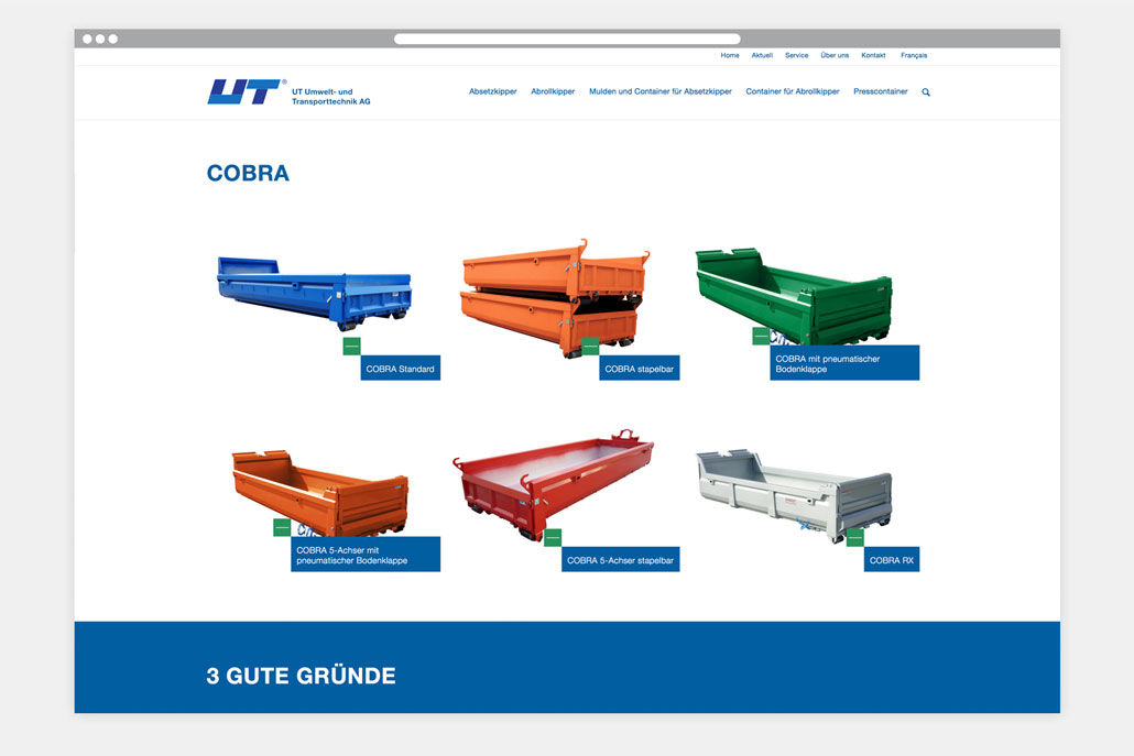 Neuentwicklung von Responsive Website für die Firma UT Umwelt- und Transporttechnik AG.